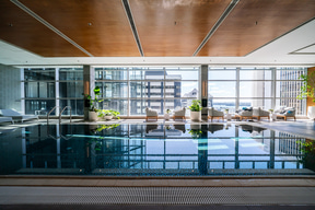 最後に、「JWマリオット・オークランド」で行なわれた、ウェルネス体験として「グループ・ヨガ・セッション」に参加した。第4日曜の7時30分から定員6名で、10階にある屋内温水プールで開催されているほか、人数が集まれば任意での開催も可能とのこと。宿泊者向けなので無料。