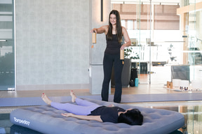 軽くヨガのストレッチなどを行なって整えたあと、プールに浮かべたエアマット上に寝て漂いながら、クリスタル・ボールやシンギング・ボール、コシ・チャイムなどのヒーリング向け楽器を使ったドローン・ミュージック演奏を聞きながら長時間リラックスする。