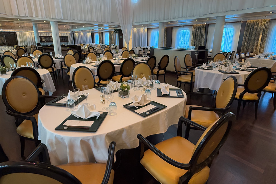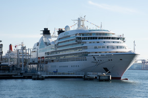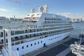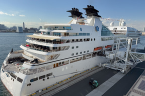 船の全容については以前詳しく紹介しているが、主要諸元は全長198.15m、全幅25.6m、喫水6.4m、総トン数は3万2477トン、速力は19ノット。客室数229、旅客定員は458名、船籍はバハマ。