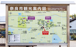 近鉄奈良駅からは大和西大寺駅で乗り換えが必要ではあるものの、10分程度でアクセスできるのはなんともうれしいところ。ただ、駅から近いのは北側の與楽(ようらく)門だが、正門といえるのは逆側の南門。ちょっと回り道になるけれど、駅の西出口を出て一般道に迂回して南側からスタートしたいところ。