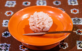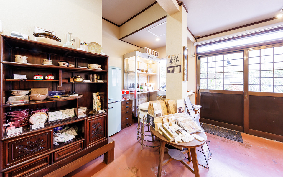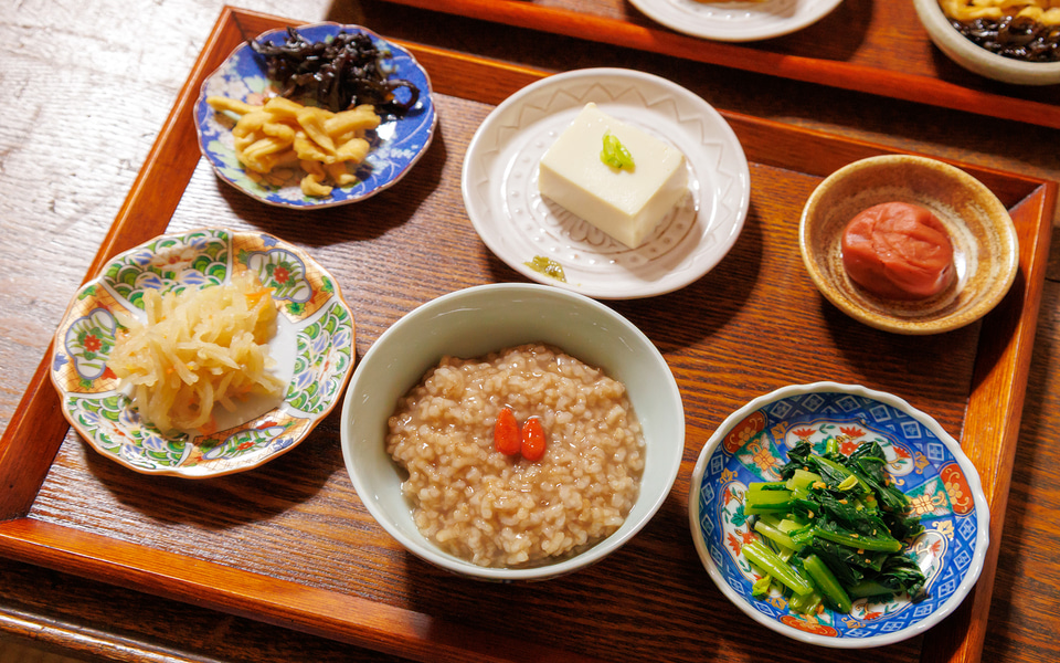 薬師寺から唐招提寺方面に向かって数分歩いたところにあるのが、古民家を活用したカフェ「ホトケノネドコ」。築百年の古民家はもともと僧房だったそうで、雰囲気を今に残した店内は親類の家を尋ねたような心温まる空間。そこで提供されるのは奈良の伝統ある郷土料理「茶粥」。