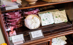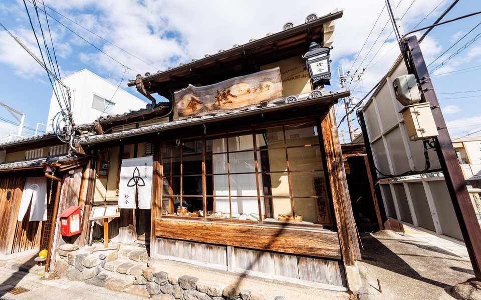 ならまちのメインストリートとなるならまち大通りに居を構える和菓子店。奈良の古社寺御用達の同店ではぜんざいや抹茶などのメニューを店内で楽しむことができるほか、干菓子や生菓子などはテイクアウトもOK。