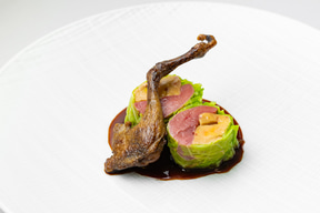 今回はディナーのル・ボワコースから一部を抜粋した料理をいただきつつ、サロンコンサートを楽しむことができた。クラシックな技法と和風の素材を組み合わせたフランス料理は、重厚さとなじみ深さが絶妙にマッチした素晴らしい味わいだった。なお、料理写真はすべてホテル提供のものになる。