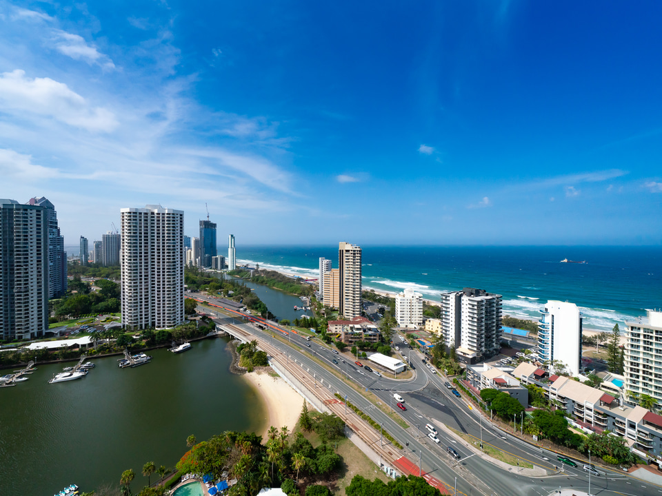 ゴールドコーストは、オーストラリア東海岸の海沿いに広がる南半球屈指のリゾート地だ。海沿いにはサーフィンの聖地にもなっている雄大なビーチが広がり、ホテルなどの高層ビルが並ぶが、内陸に向かって細かく運河が張り巡らされ、ヒンターランドと呼ばれる亜熱帯雨林が広がり、豊かな自然を楽しめる地域でもある。