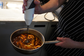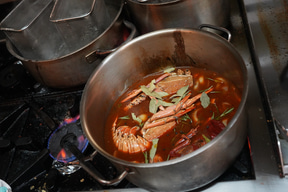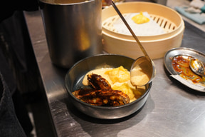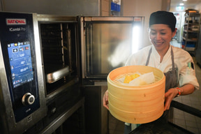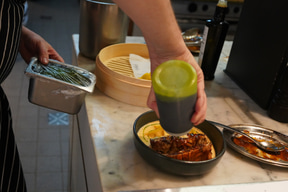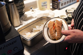 JWマリオット・ゴールドコースト・リゾート&スパのエグゼクティブシェフのポール・スマート氏。ホテル内の「JW・ガーデン」で料理に使うハーブを摘んでいるところ レストラン「シトリック(Citrique)」では地元の素材を活かした料理が楽しめる。朝のビュッフェ会場にもなっている シュウマイっぽいものを作る模様。材料が用意されている 地元では「ベイ・バグ(湾のムシ)」と呼ばれている、ウチワエビモドキという甲殻類も入れる 卵白、生クリーム、コブミカンの葉を入れ、塩で味を調える トマトベースで、ハーブのタラゴンも入っている。これを煮詰める 仕上げで盛り付けていく。餃子と焼いたベイ・バグを入れて 自分で盛り付けて完成。いただきましょう。多少なりとも自分が参加したのは、美味しさも格別 ホテル内の本格スパ「Spa by JW」でマッサージ体験