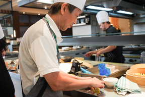 要所はシェフが行なってくれて、簡単な作業と盛り付けなどをキッチン内で体験するもの。経験がない子供でも問題はない。これは、「Family by JW」というファミリー向け体験プログラムの1つの料理教室で、事前の予約が必要。実際の体験プログラムは時期によって変わってくる。