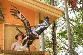 人気のコアラの「抱っこ」または「タッチ」体験(写真撮影付き)は別料金なのだが、ここで紹介している「ワイルドスカイズ・バードショー」や「動物病院プレゼンテーション」などの多くのショーと、移動のミニチュアトレイン乗車は入場チケットに含まれている。