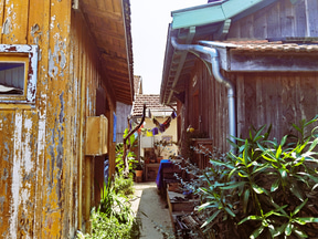 冬の町は個性的で美しいアルカション様式と言われる屋敷が立ち並ぶエリアです。私が泊まったホテル「Residence Villa Regina」もこの冬の町にあり、19世紀の歴史的建築で、モネやセザンヌが滞在した記録も残っています。現在は庶民的なレジデンス型ホテルで、各部屋に簡易キッチンがあって便利でした。