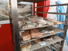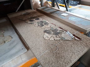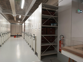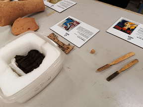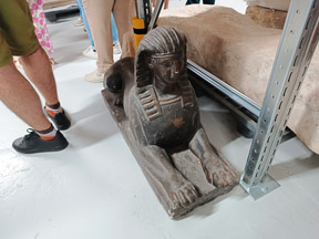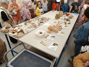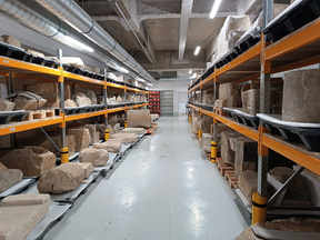 DHAAPは建築史部門と考古学部門から成っており、今回は考古学部門を見てきました。考古学部門は5人の考古学者、1人の考古地理学者、1人の修復士で構成されています。内部の棚には古代や中世の青銅貨などの金属製品や、人間や動物の遺骨、石材などが所せましと並んでいます。「発掘現場で見つかったものは、ほぼすべて保管しています」とのこと。約800m2のスペースに約10万点が収蔵されています。