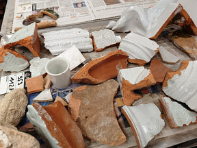 陶器・ガラス:洗浄後に欠損部を樹脂で補填