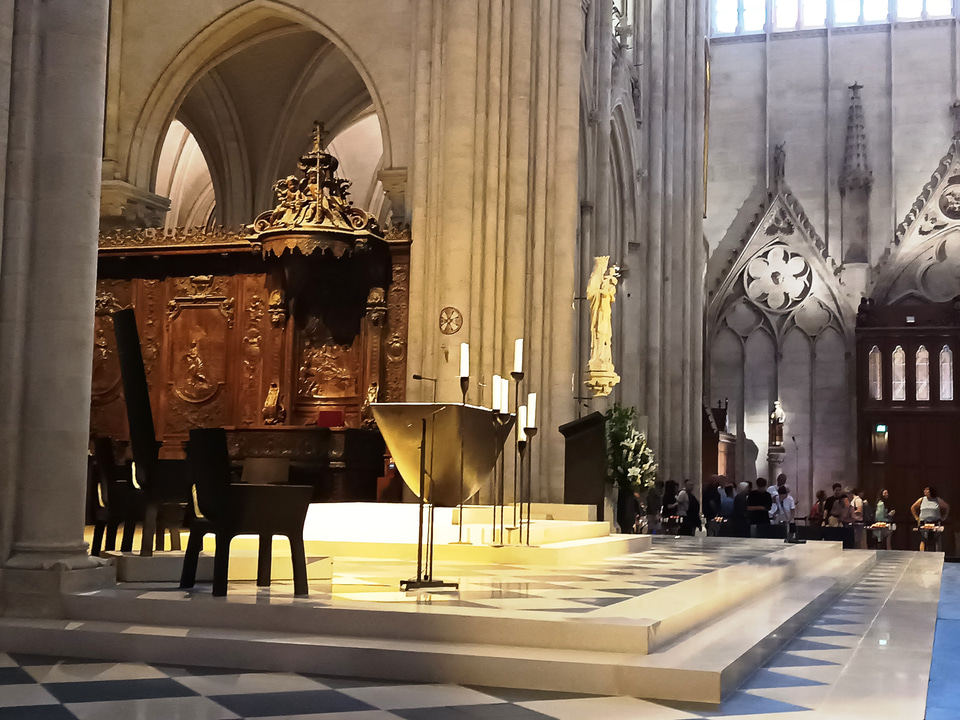 2019年4月15日に起きたノートルダム大聖堂火災ですが、まだ工事は続いているものの、2024年12月、ついに一般公開が再開されました。私も見に行きましたが、薄暗い感じが一掃され、とにかく明るい! どこもきらきらで、ため息の出るような美しさでした。ただ再建しただけではなく、新しい技術も取り入れており、フランスのノートルダム大聖堂に対する深い愛情と、火災以前よりもよいものにする、という意気込みを感じました。