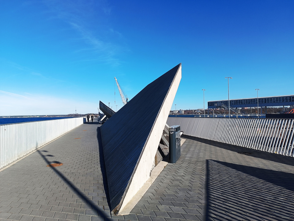 アパートを出て海沿いの遊歩道を歩いて行くと、フェリーやクルーズ船の発着所があります。途中には市民がボランティアで運営する公共のサウナがあり、1時間半8ユーロで気軽に利用できます。見ていると、サウナで暑くなった人びとが目の前の冷たい海で体を冷ましていました。