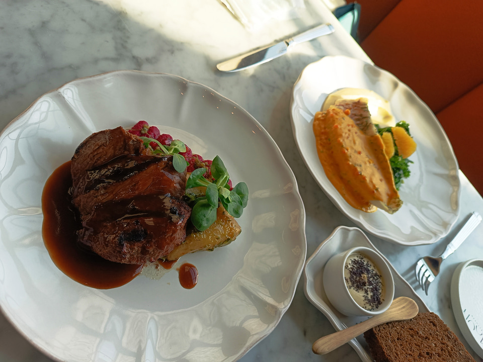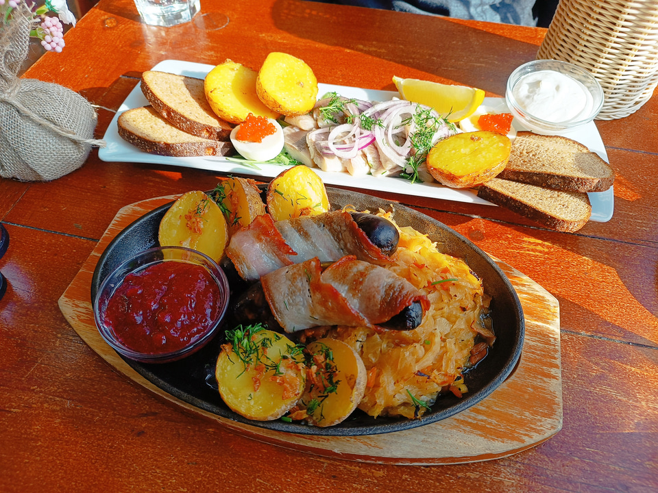 タウンホール広場に面したレストランOld Estoniaは、観光地のど真ん中という場所的にあまり期待していなかったのですが、サービスが親切で一安心。ニシンのマリネと、豚の血で作られたブラッドソーセージにザワークラウトとジャムが添えられたエストニア料理を食べましたが、フランスでも普通に食べる食材ですし、家庭料理的な感じでした。