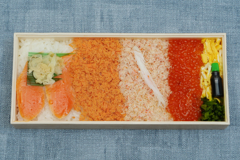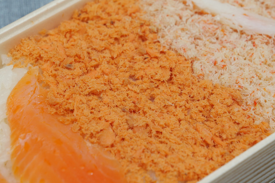 まさかいくらなんでも寿司の「ま」は鱒、「さ」は鮭、「か」は蟹、「いくら」はそのものイクラを指しています。つまりこの駅弁は鱒、鮭、蟹、イクラを贅沢に使ったお寿司なのです。