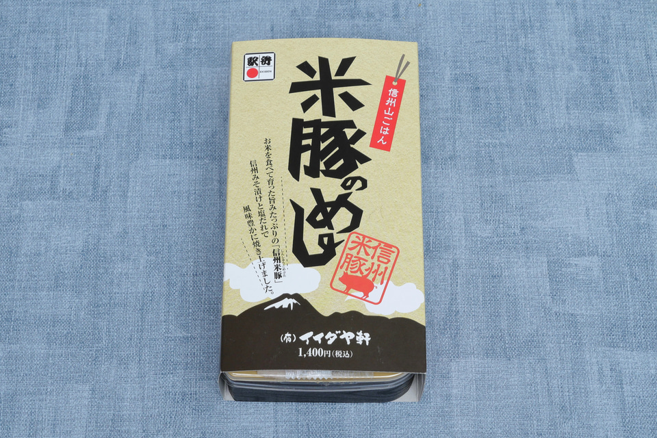 長野県の松本といえば、どうしても鶏肉を豪快に揚げた「山賊焼」をまっ先に思い浮かべてしまいます。そんなこともあって、今回松本駅を訪れた際にも、お肉の駅弁が食べたいと思って手に取ったのが、「米豚のめし」です。