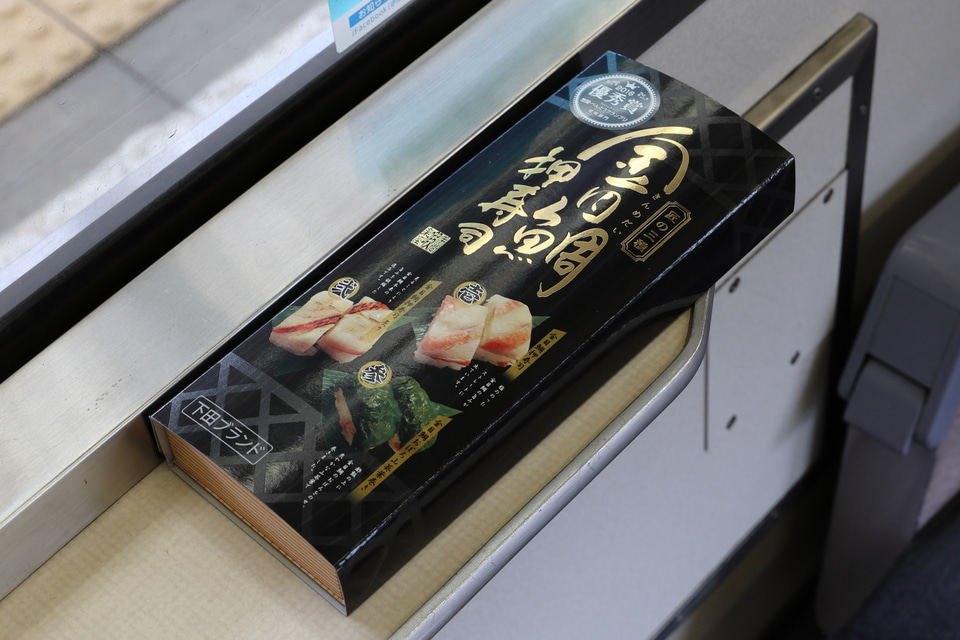 ちなみに伊豆急行では、金目鯛料理と伊豆高原~伊豆急下田間のフリーきっぷがセットになった「金目きっぷ」を販売していたり、「キンメ電車」を運行していたりと、この地での金目鯛の愛されっぷりを感じます。サイズ的にはコンパクトな駅弁ですが、伊豆で愛されている名物を気軽に楽しみながら、押寿司ならではのボリュームで腹がいっぱいになるお得な一箱でした。