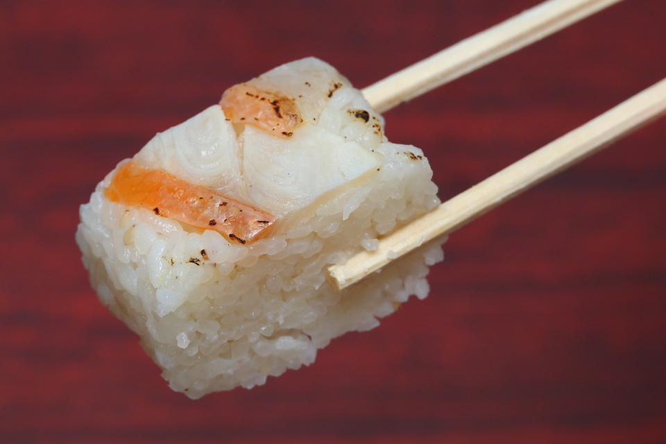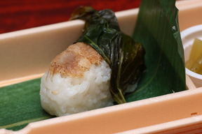 押し寿司は酢締めと炙りの2種。酢締めは脂の乗った金目鯛の本来の味がストレートで楽しめます。一方、炙ることで本来の旨みを凝縮したという炙りの押し寿司は口に入れた瞬間香ばしさを感じます。食感や味に違いはあるものの、どちらも金目鯛の美味しさを十分に活かしたもので甲乙つけがたいものでした。ちなみにギュッと詰まった酢飯はサイズのわりにけっこうボリュームを感じます。