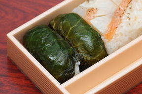 金目鯛同様に伊豆の名産である山葵を使ったのが、山葵葉巻きです。ほんのりとした甘みを感じる金目鯛のおぼろを山葵の葉で包んだもので、おぼろの甘さと山葵の葉の組み合わせがとても合っていて美味しい寿司でした。