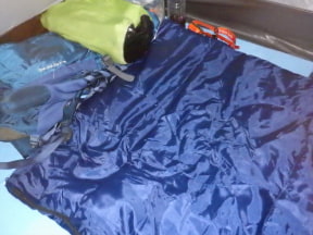 6月下旬、奈良県曽爾村の垰(TAWA)キャンプ場で一晩、シュラフを使用してみた。山岳用テントを設営して、銀マット、エアマットを敷く。枕はザック(山岳用リュックサック)を流用。本来の登山ではシュラフの外側に、結露で濡れるのを防ぐためシュラフカバーを被せるのだが、この日はこれを省略。シュラフそのものの快適性と保温性を試した。