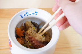 ひっぱりだこ飯は、明石海峡大橋の開通を記念して1998年に誕生した駅弁で、味はもちろん、明石の伝統漁法で使用する「たこ壺」風の陶器とそのネーミングのユニークさから、全国的な人気を誇る。