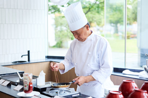 ご朝食では、シェフが目の前で調理するできたての卵料理や、その場で作ることができるラーメンなどの麺メニューをぜひご賞味ください。朝食のあとは、ラウンジのコーヒーを片手にゆっくりお仕事に集中し、ランチはホテル周辺の多彩なレストランへ足を運ぶ、という過ごし方もオススメです。