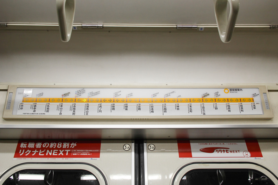 今では大都市圏だとすっかり「当たり前」の仕掛けになったのが、車内情報表示装置。大別すると、「路線図式」「LEDで文字だけ表示」「液晶ディスプレイで映像を表示」の3種類がある。