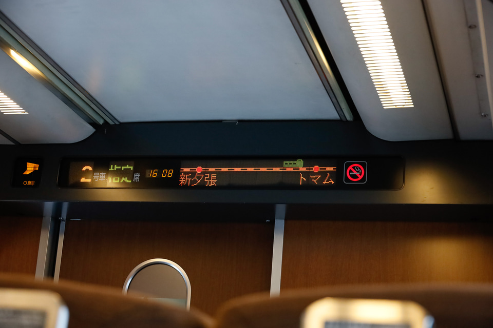 なお、途中で停車あるいは通過する駅の駅名標を読み取る方法もあるが、これは実際にやってみるとなかなか難しく、動体視力が試される。山陽新幹線の駅みたいに、ホーム端に駅名を大書した看板があれば話は別だ。