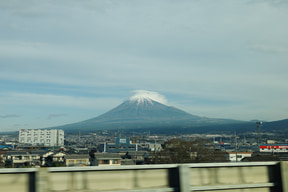 何か目立つランドマークが沿線にあれば、この方法はけっこう有用。その極め付きが、東海道新幹線の「富士山」ではないかと思われる。富士山以外でもランドマークになっている山はいろいろあるが、知らないと分からない。個人的には、東北新幹線で盛岡に近付くと岩手山が見えてくるのがメジャーな事例だが。