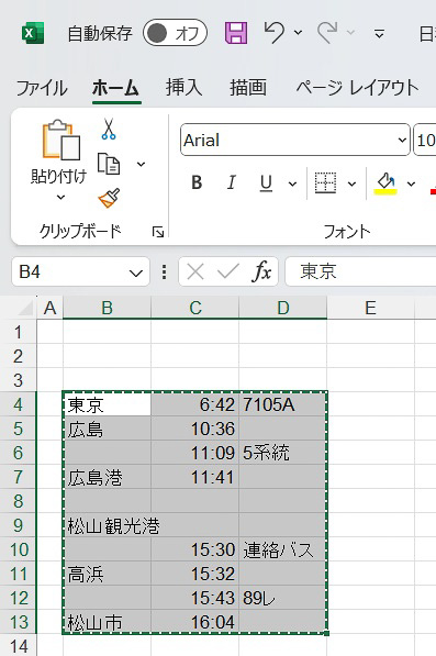逆方向で、OneNoteの表をコピーしてExcelに貼り付けることもできる。だから、全行程を終えて帰宅したあとに、OneNoteに記録しておいた実際の行程をExcelにコピペで転記すれば、それが保存用のデータになる。