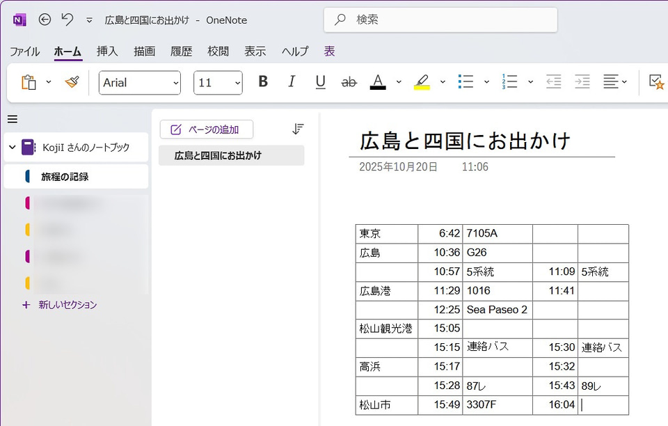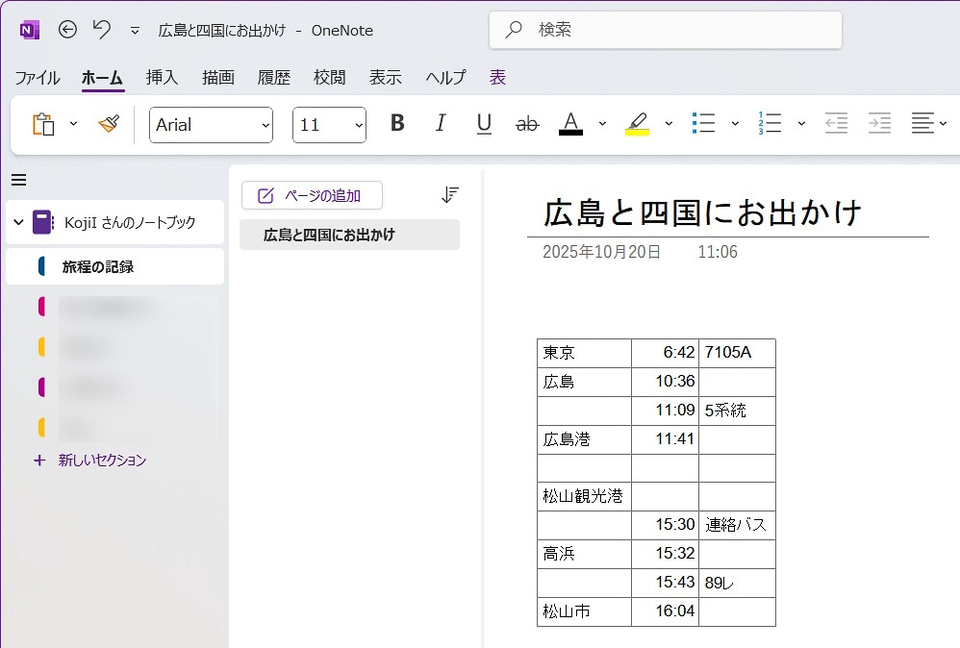 なお、ときには詳細なスケジュールを事前に決めない「行き当たりばったり」になることもある。その場合、OneNoteで空白のセルをたくさん用意しておいて、列車に乗るその都度、情報を記入するようにしている。