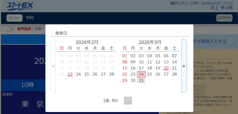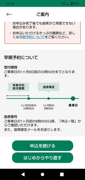 申し込みの手順に特段の相違はない。指定する乗車日が、申し込みの当日から1か月先の日を起点として、さらに何日か先になる、というだけのことである。
