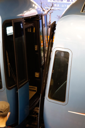 また、新幹線は先頭部が流線形、かつ運転台と機器室で埋まっているから、当然ながら併結しても車内での行き来はできない。途中の停車駅でホームを走るしかない。