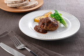 第1弾のハンバーグソースには、八丁味噌をベースに、アクセントとして大根おろしを加え、「大根おろし田楽八丁味噌ソース」に仕上げました。