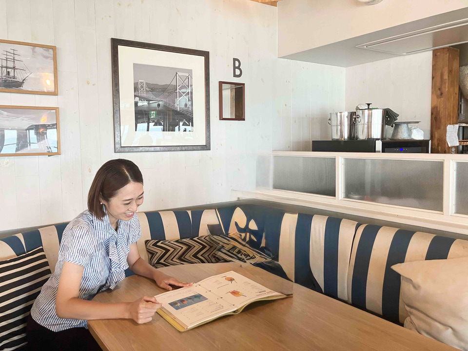 落ち着いた店内に入ると小麦粉の焼ける芳ばしい香りが漂ってきて、大きな窓からは海や緑がどの席からも目に入ります。