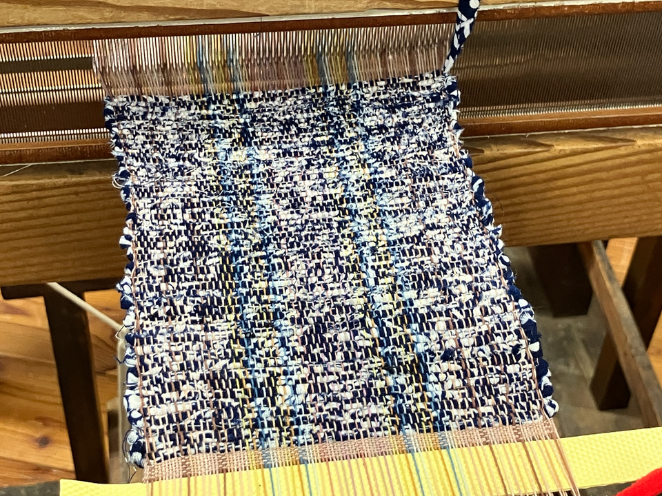 さき織り体験は、こちらの「草の家」に伺いました。「草の家」では古い布を細かく裂いて、よこ糸として再生する「さき織り」を体験。