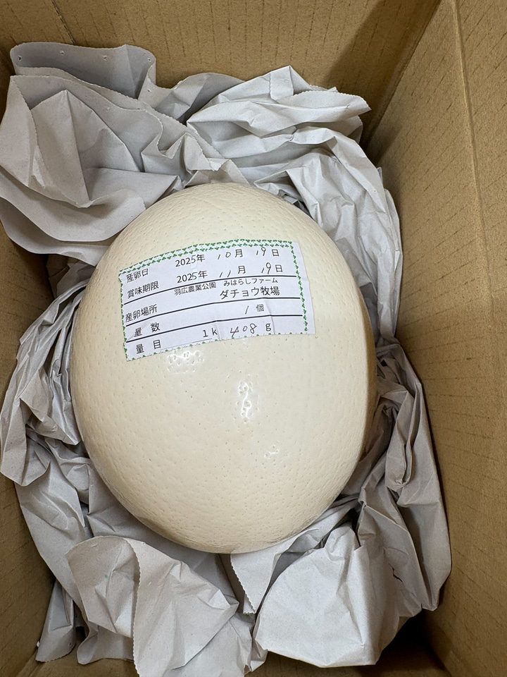 先ほどご紹介した「とれたて市場」では「ダチョウのたまご」が販売されています! 初めて見る「ダチョウのたまご」の大きさに衝撃を受けました。