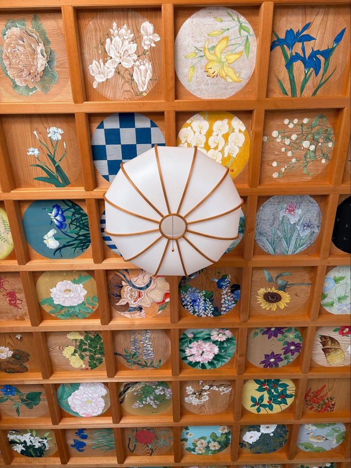 また、見上げると160枚もの鮮やかな花と日本画からなる圧巻の天井画を見ることができます。