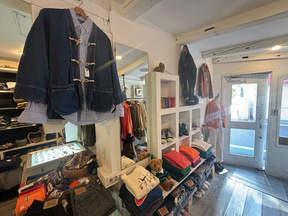こちらはレディース古着専門店だそうで、いつもユニセックスな古着屋さんで買い物する私としてはうれしいところ。素敵なシルクのブラウスを発見して早速試着。