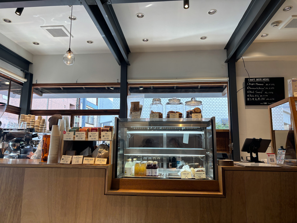 ランチからのお買い物をして、たいした距離は歩いていないのですが少しカフェで休憩をしようかなと「SIDEWALK COFFEE YUTENJI」に入りました。広過ぎず、狭過ぎず、ちょうどいい広さの店内に美味しそうなパンやケーキがショーケースに並んでいます。