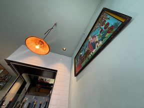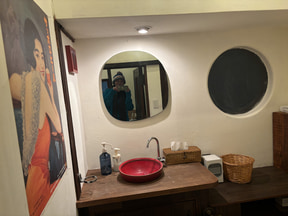 この日はオーナー不在でしたが、オーナーも私と同じく旅をするのが好きな方のようで、2階のトイレには旅先で見つけた素敵なアートも。そんなところに私も共通点を感じて、1階に降りるとなんだか昔アルゼンチンで滞在していた家のようなアートスペース横の空間が。アルゼンチンの家の作りは真ん中にパティオ(中庭)があるおうちがあるのですが、それを思い出しとても懐かしい気持ちになりました。