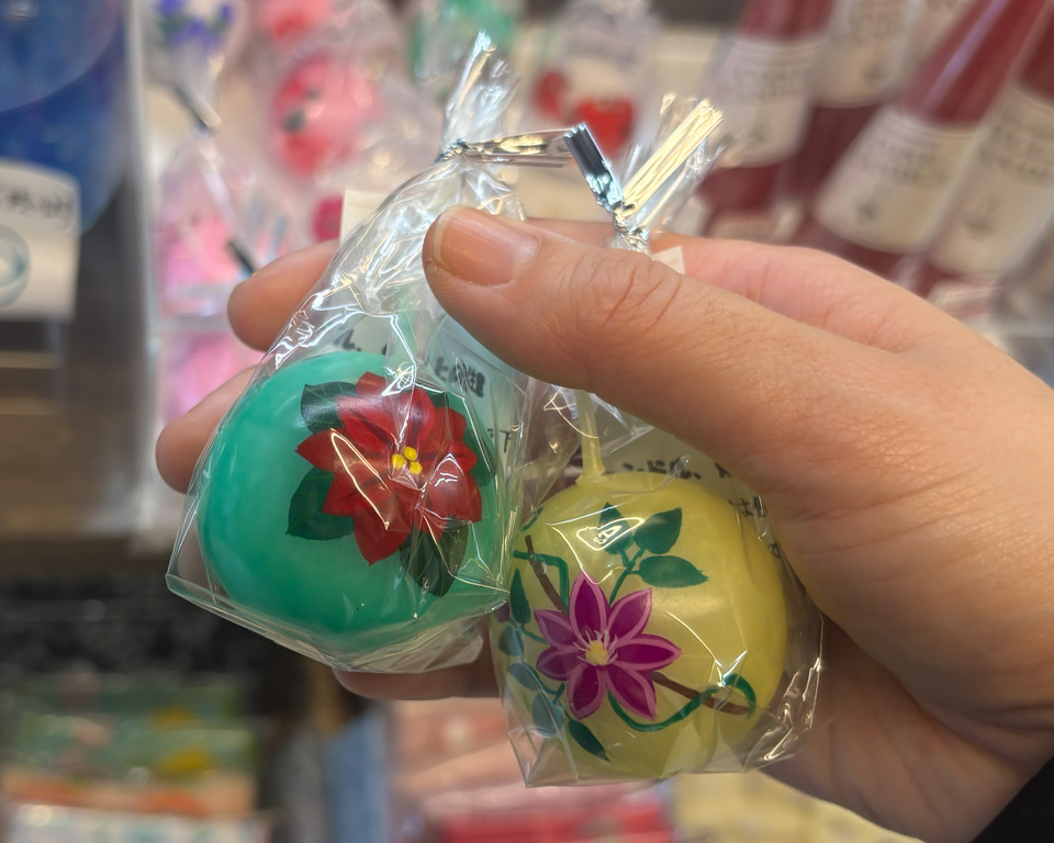 こちらでは昔ながらの和ろうそくを使用しているそうで、燃焼時間も長く楽しめるんですって。私は燭台を持っていないので長いろうそくは買わず、水に浮かべて使えるかわいい丸ろうそくを購入しました。お風呂に入るときなどのリラックスタイムに使おうと思います。