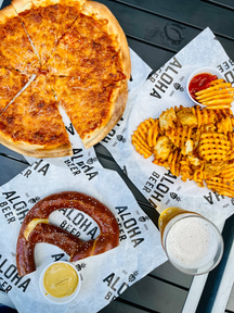 この店はオアフ島カカアコやダウンタウンに店舗を持ち、ビール好きのロコ御用達のブリュワリー。ワイキキ店はビル前のスペースにあって、ハッピーアワーなら、ピザやハーフプレッツェルなどが10ドル以下。メキシコのパシフィコビールは格安の1杯2ドル。水のようにゴクゴクいけてしまうラガーなので、2杯目はぜひオリジナルクラフトビールを。カカアコ店の醸造所で作り、そこの通り名にちなんだ「QUEEN ST. PILS」や、軽くて爽やかなブロンドエール「ALOHA BLONDE」など、自慢のビールを6ドル前後で楽しめる。