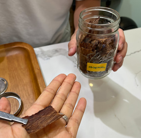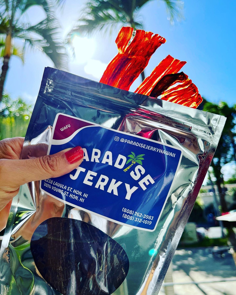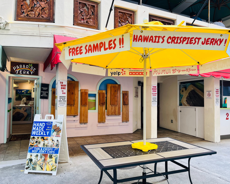 ホノルルで手作りされているこのジャーキーは、チップスのようにパリッと薄くて軽い。スナック感覚で食べられるので子供のおやつに買っていく人もいるという。噛み締めるとジュワッとビーフの味わいがにじみ出る。ビーフなので日本へ持ち帰るのは難しいが、食べ始めるとあっという間に空になるから心配ない。店内で試食できるので好きなフレーバーを選ぼう。