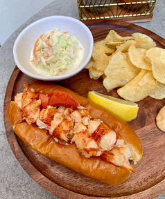 ハワイではコロナ前からロブスターロールのブームがじわじわと始まり、新店舗が次々に登場したが、昨年9月にオープンしたこの店のインパクトは大きかった。ロブスターロールの本場であるメイン州から直送する新鮮なロブスターのこぶし、爪(ハサミ)、さらにロブスターテール部分が丸ごとブリオッシュにぎゅうぎゅうに詰められているのだ。すでにバターは垂らしてあるので、一口目はレモンをキュッと絞って。二口目はガーリックマヨネーズをつけて頬張る。凝縮された甘みが口いっぱいに広がるので、存分に味わおう。