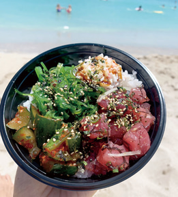 自分が食べたいものだけをご飯にのせたローカルスタイルのポケ丼は、「好き」が集まっているので、飽きることなくあっという間に完食してしまった。ぜひここから5分のワイキキビーチに直行して食べてみてほしい。海からの風を受けながら食べるハワイの味は最高だから。