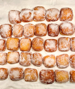 1800年代にポルトガルからの移民がハワイに紹介した「マラサダ」は、今では誰もが大好きなハワイの定番おやつ。ここのマラサダは、一般的な丸いタイプではなく、四角いフォルム。オリジナルとモチスタイルの2種類で、ベーシックなシュガー、シナモンシュガーに加えて、パッション・オレンジ・グアバなどの日替わりフレーバーシュガーや、なかにクリームが入ったタイプもある。