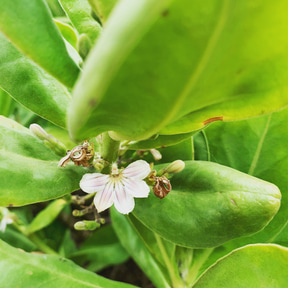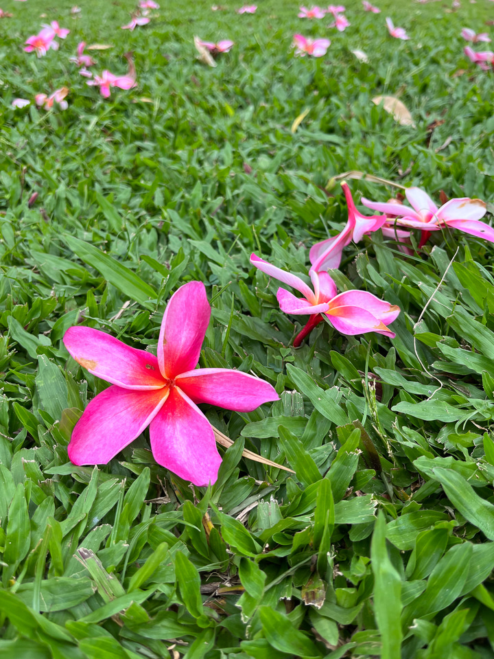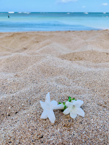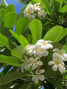 外来種の話をしておいてお勧めするのもなんですが……。とはいえ、すでに公園やビーチの近くで春から咲き始め、いい香りをもたらしているプルメリア、それなら楽しく活用したい。朝は木の下にたくさんきれいな状態の花が落ちているので、それを一つ耳に飾って散歩を続けよう。地元の人は(男性もごくたまに)、自分の庭に咲くプルメリアをサッと耳に飾ったりする。気を付けたいのは、既婚者は左耳に、フリーの方は右耳に挿すということ。もう一輪は、持ち帰ってグラスに水を入れて浮かべれば部屋のなかがパッと明るくなりほのかに香る。ぜひお試しを。