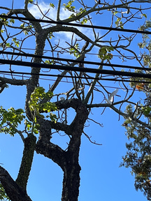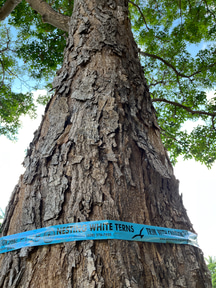 散歩中、木に青いテープが巻かれていたら、「この木にマヌオクーのヒナがいる」のサイン。巣を作らずに木に直接卵を産んで育てるので、住民たちはヒナを大切に見守っている。