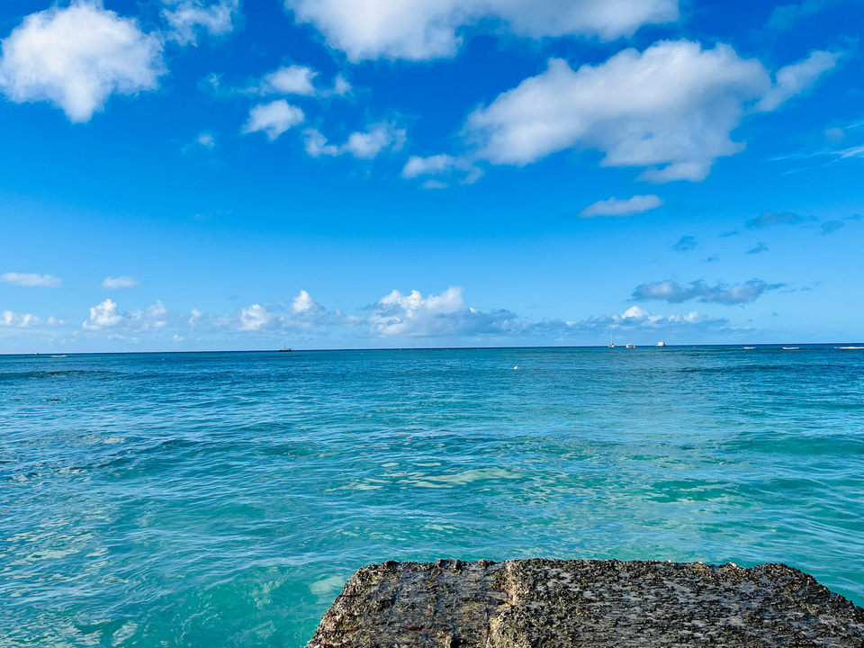 ワイキキビーチは午後は逆光になる季節が多い。午前中はダイヤモンドヘッドから太陽が昇るのでその光で海の写真を撮ると抜けるような青空と海を写真に収めることができる。