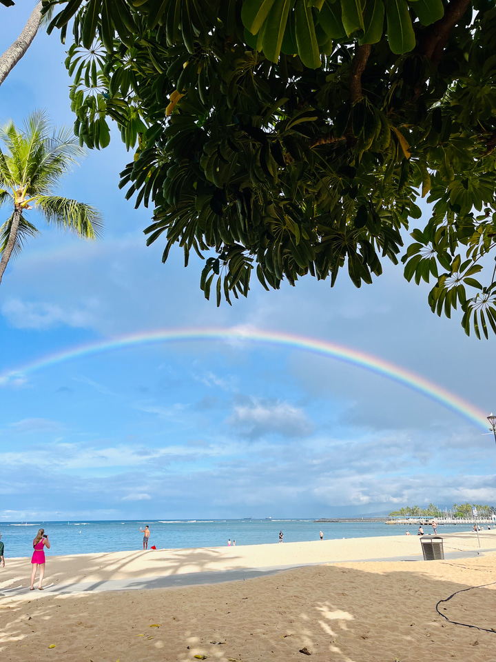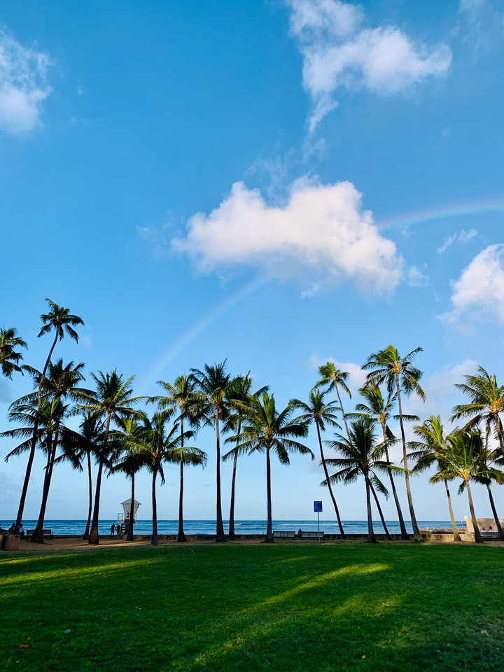 そろそろ乾季へと切り替わってきたハワイだが、朝晩はさっと雨が降ることも。地元ではこれを「シャワー」と呼び、祝福の雨だったりと縁起のよいものと捉えられる。シャワーが来たら、すぐに止むので木の下でしばし雨宿りを。そのあとは虹の贈り物があるはず。朝は虹を見られるチャンスが多い時間帯。ダブルレインボーに出会えることも多いのでよ~く見てみよう。